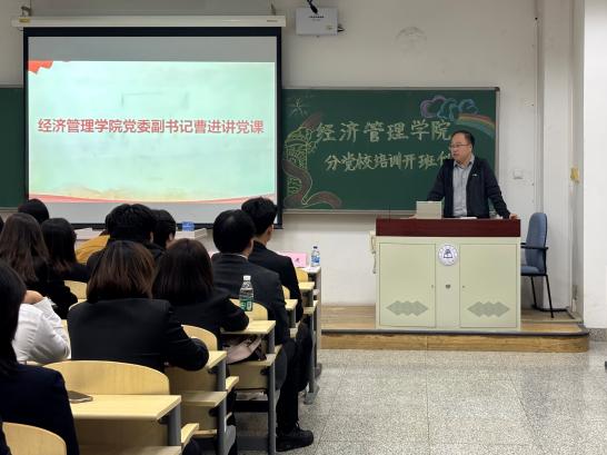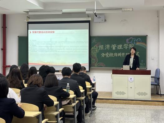10月15日,经济管理学院在教学楼303教室举办分党校培训开班仪式,学院党委副书记曹进、组织员闫朝、党建辅导员朱羽、2025年秋季学期入党积极分子和拟发展对象参加此次开班仪式。