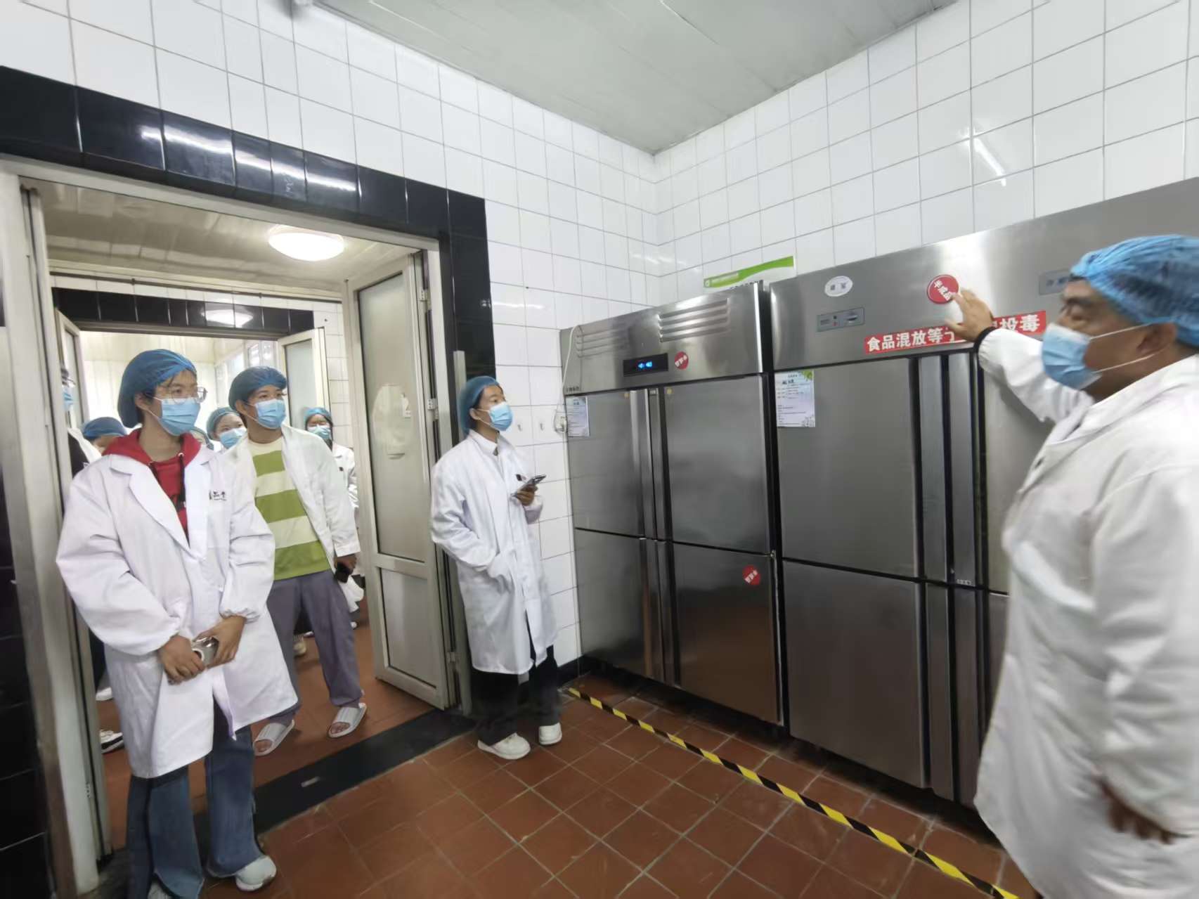 在食堂负责人的陪同下,同学们依次查看了就餐区、菜品展示区、后厨加工区、仓储库房、洗消间等关键区域。对食堂整洁有序的环境,规范透明的流程,细致到位的管理留下了深刻的印象,加强食堂管理者与用餐者之间的沟通与信任。