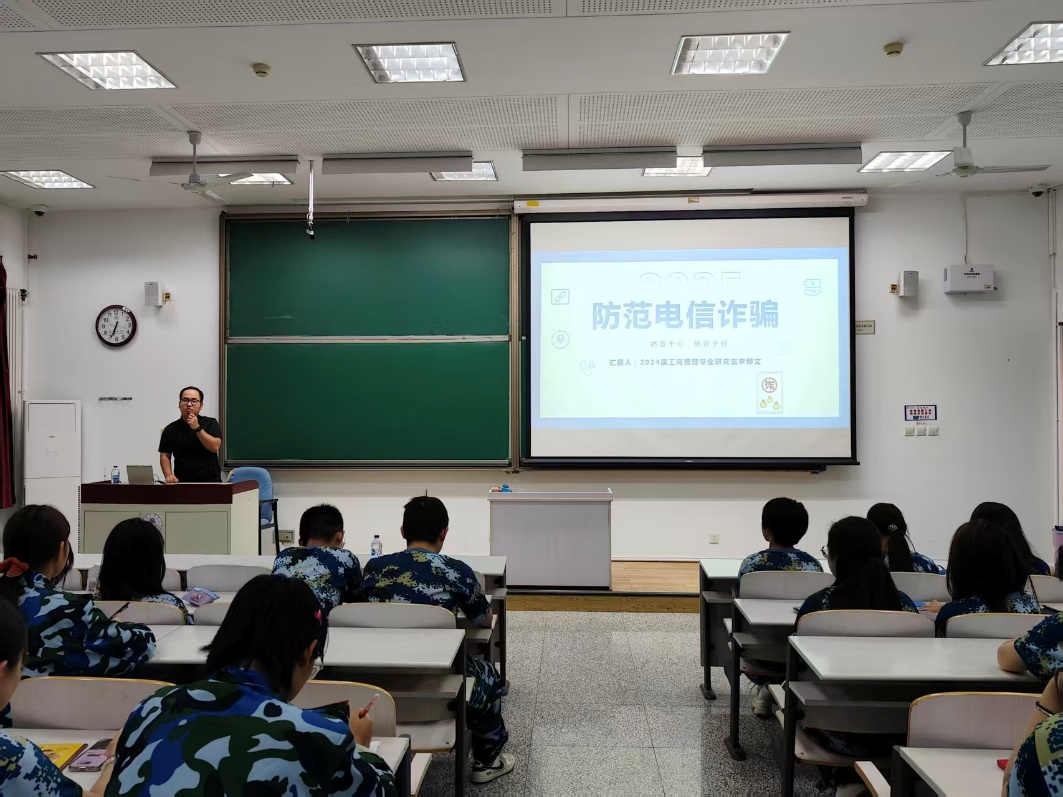 为增强 2025 级新生对电信诈骗的防范意识,提升自我保护能力,经济管理学院邀请原工商管理专业优秀校友李博文为新生做防电信诈骗宣讲。2025 级全体新生参与了本次活动。