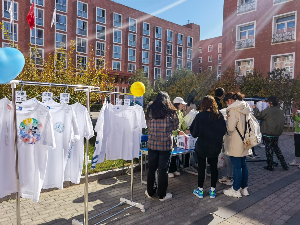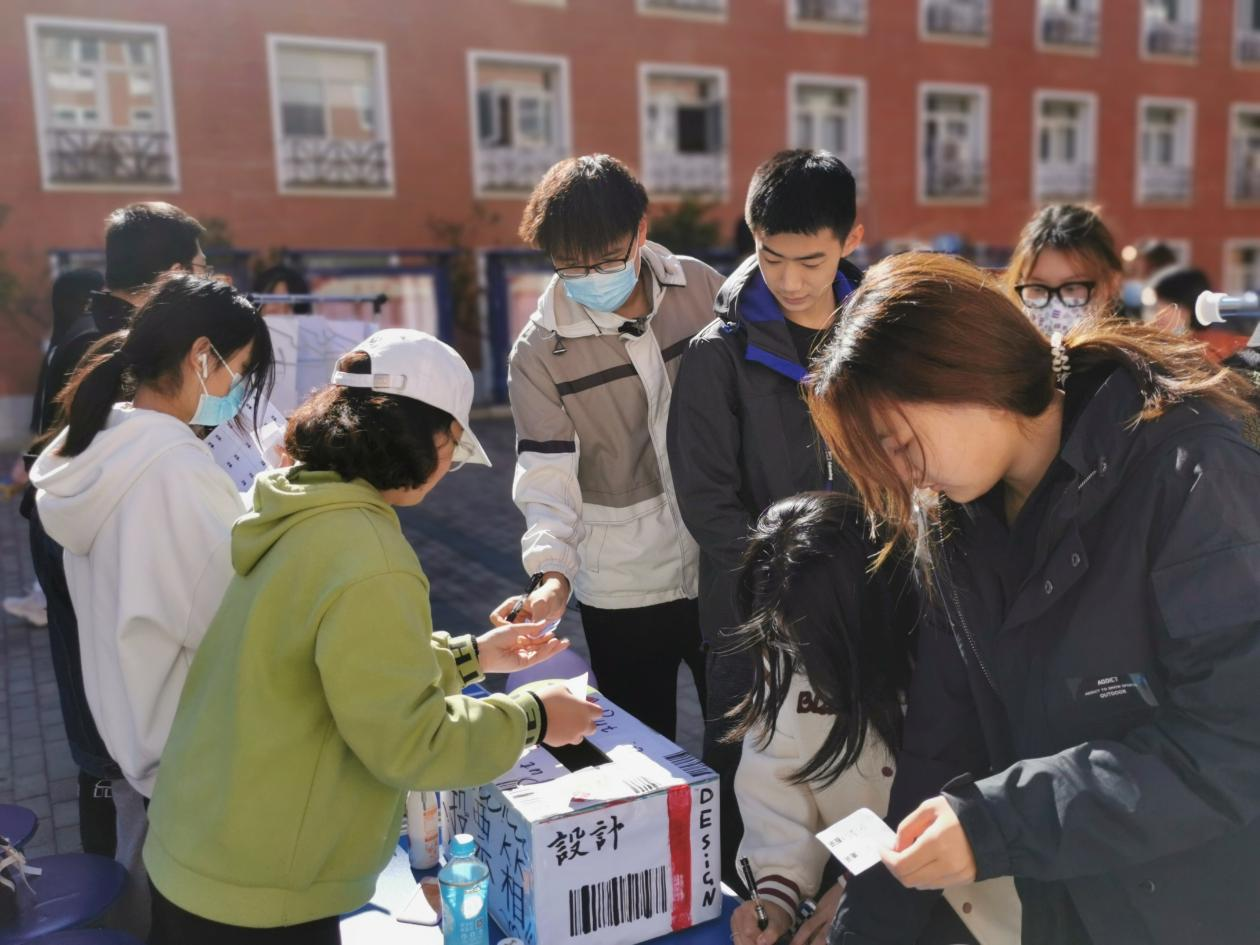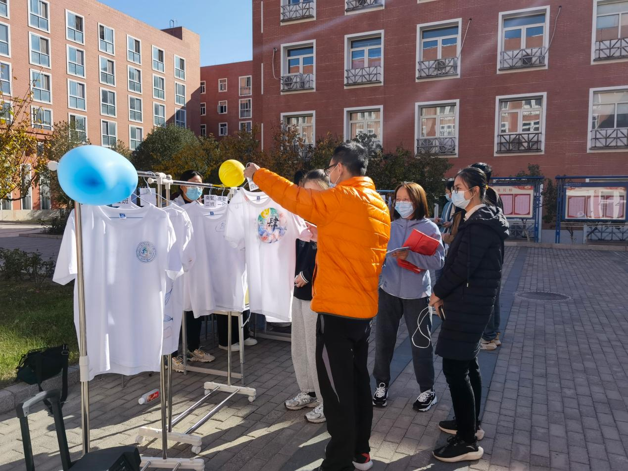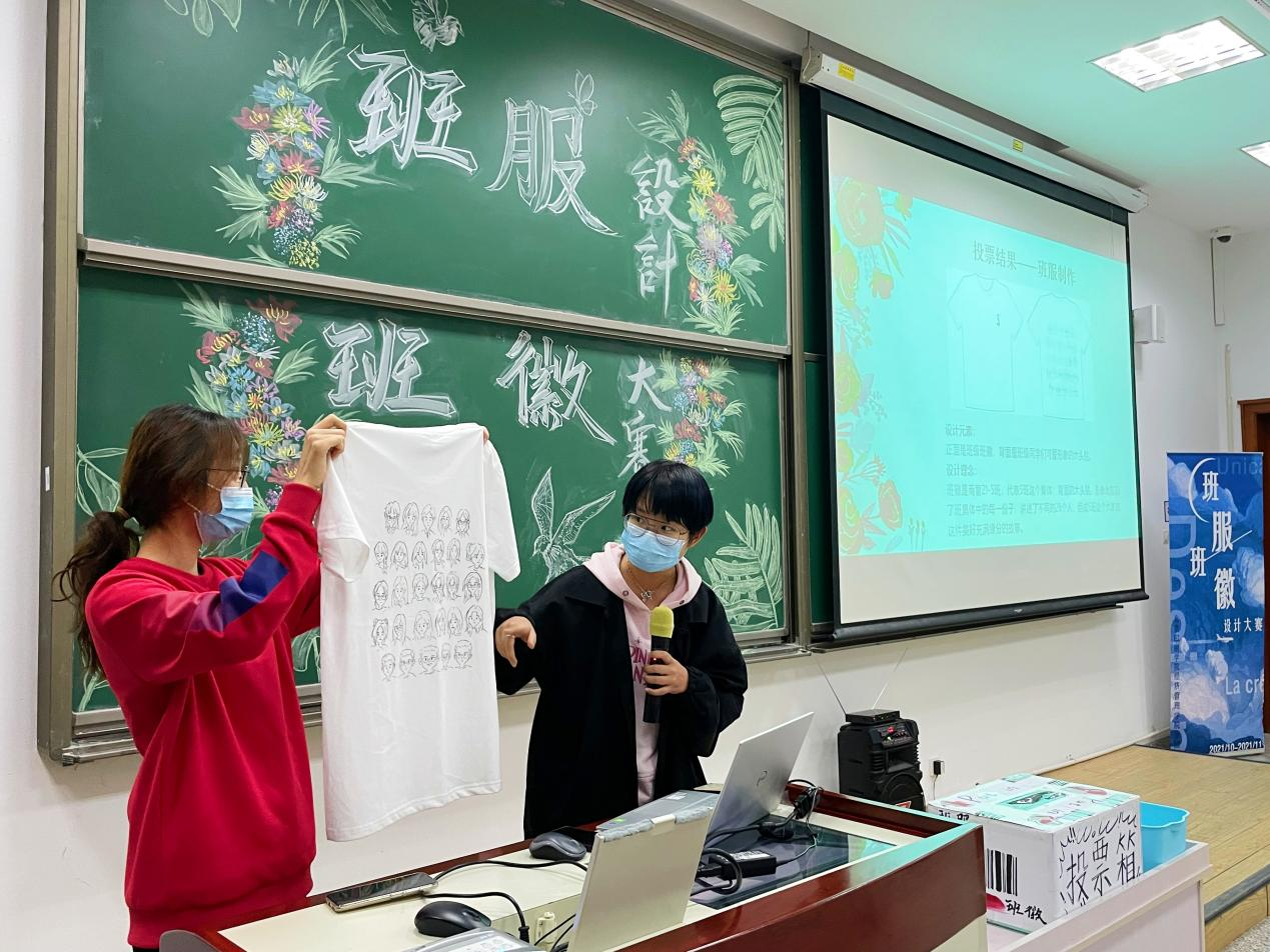 班服寄托着我们的希望,班徽象征着我们的风采。经过半个月的准备,21级同学们提交了亲手设计且展现本班特色的班服和班徽。2021年10月27日,大赛于西校区教学楼前开展线下投票活动。