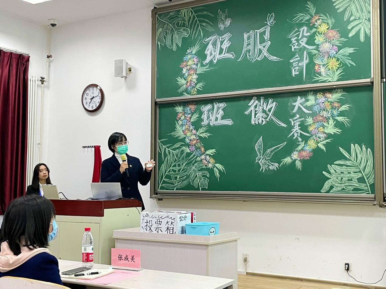 投票结束后,2021年11月1日晚七点,经济管理学院21级“班服班徽设计大赛展示大会”于教学楼503教室开展。21级各班代表进行了线下汇报,经济管理学院分团委书记、21级年级主任张成美出席了本次大会。