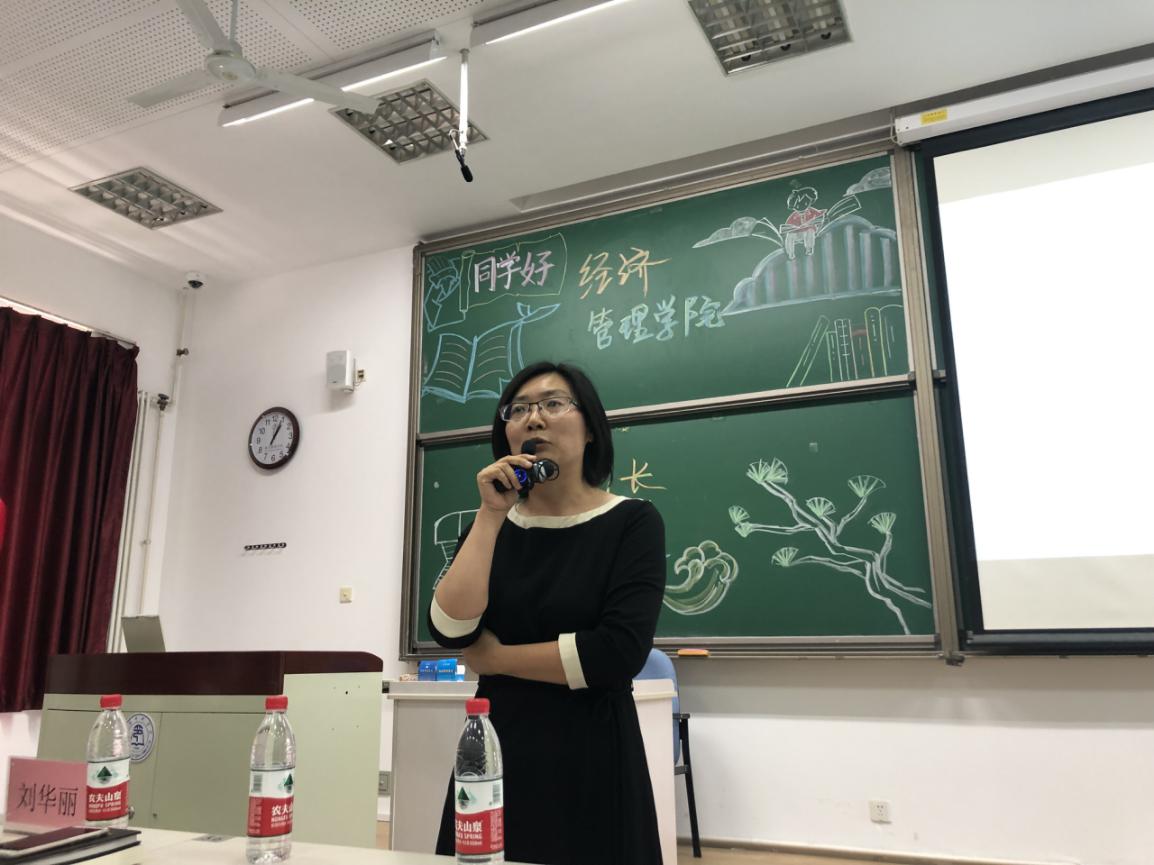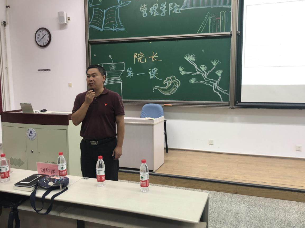 2019年9月18日,经济管理学院面向2019级新生举行的“院长第一课”在教学楼503教室开讲。经济管理学院院长李治堂、党委副书记刘华丽、副院长刘寿先以及2019级全体新生共同参加此次活动。活动由党委副书记刘华丽主持。