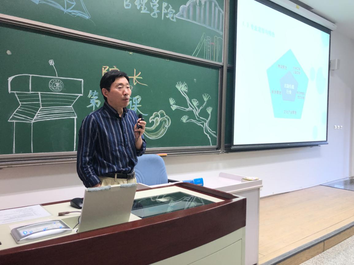 刘寿先在讲话中同样提到我院在行业中的独特魅力,为同学们讲解了专业课程安排及学院日常教学情况。