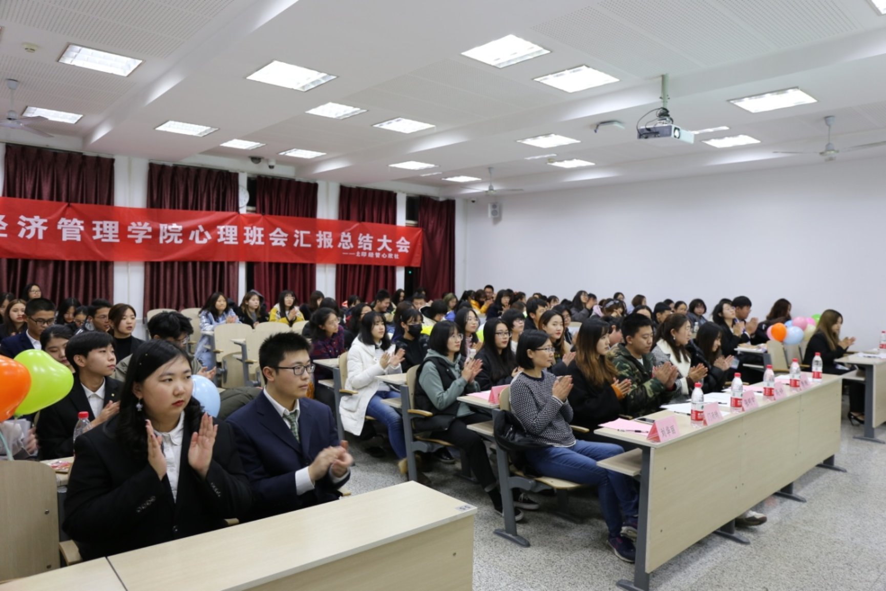 2019年11月26日,经济管理学院心欣社在教学楼101教室举办了“真心相伴,欣欣向荣” 心理班会汇报总结大会。经济管理学院党委副书记刘华丽、心委联盟会长门雨晴、心委联盟会长张明宇、心理协会会长高婷、心委联盟经管学院心委负责人李珊、经济管理学院各团学组织负责人、各班代表参加了本次活动。