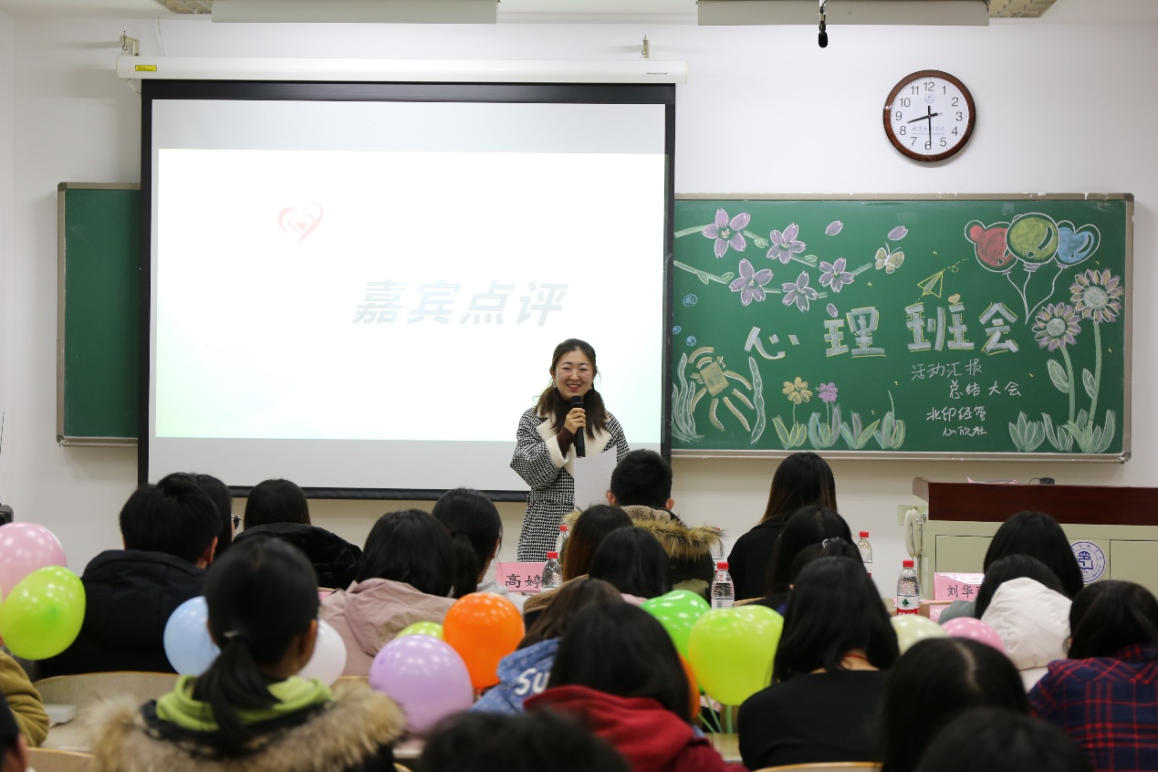 在各班精彩的汇报结束后,心委联盟会长张明宇、心理协会会长高婷分别进行了点评。认为心理班会的开展,拉近了同学们之间的距离,促进同学们的心理健康发展,同时也为各班的心理班会提出有针对性的建议。