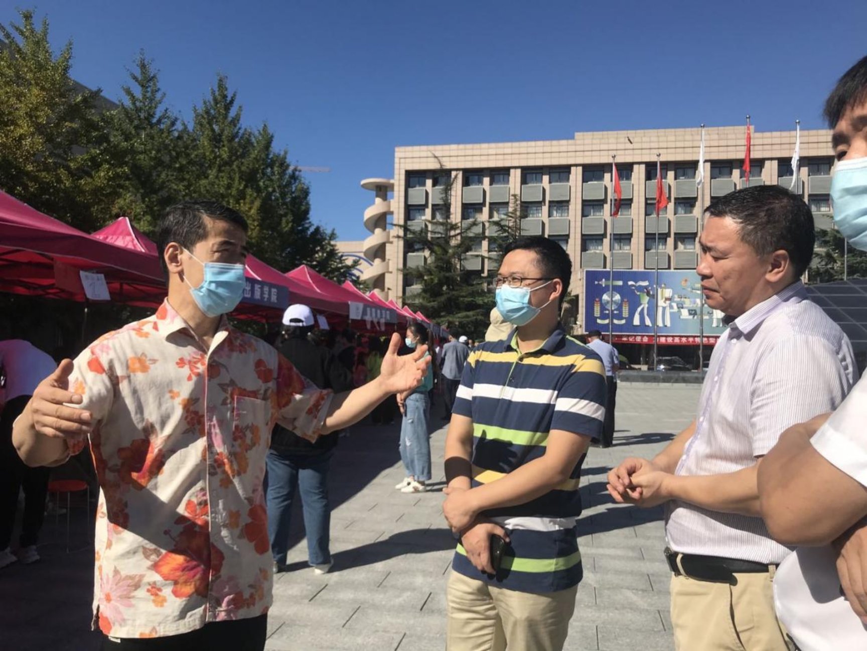 在校园里,志愿者们用帐篷撑起了一个个新生接待站,学长学姐们也积极地帮助新生搬运行李,态度真挚地回应新生的各类问题。另外学校还开展了书籍赠送活动,免费向新生们提供学长学姐们捐赠的书本。