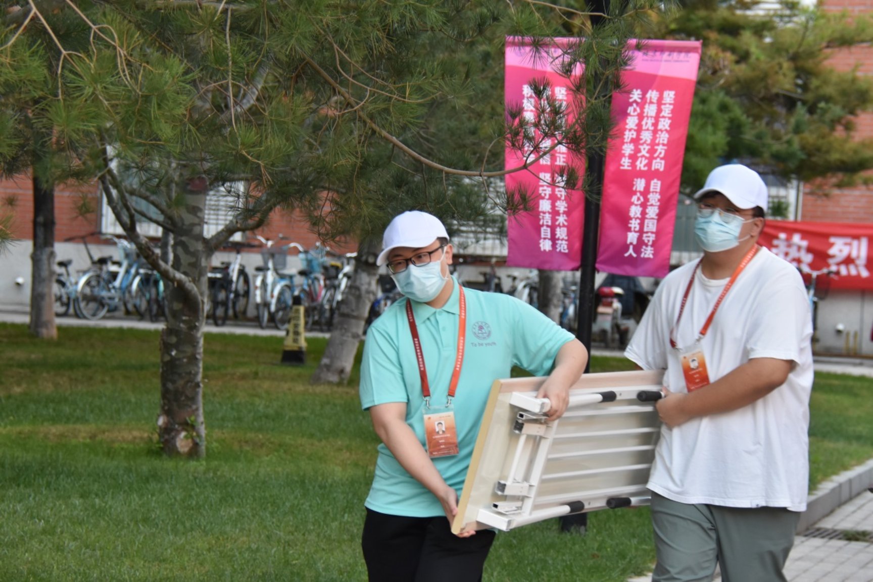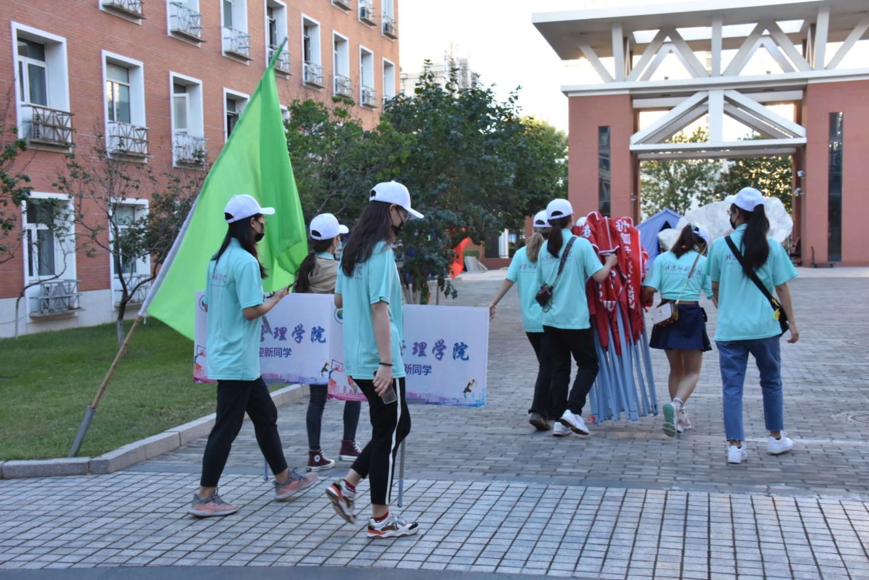 志愿者搬运迎新器材