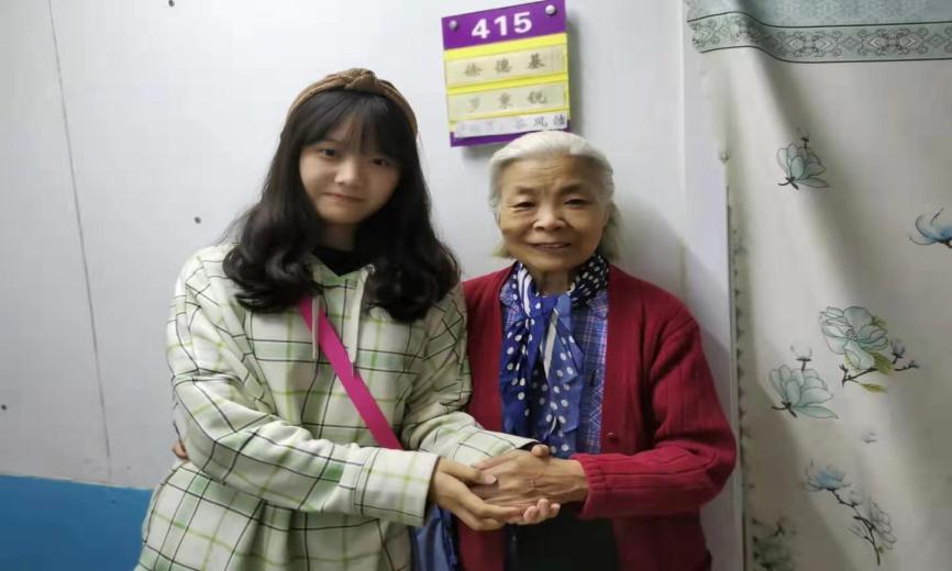另一队志愿者走进老人的房间,陪着不能去往活动室的老人们聊天。今年正值祖国建国七十周年,老人们也与我们的志愿者谈起了他们的家国情怀,以及他们在新中国成立后的体验到的生活的改变。谈起国家,老人们都为之动容,更是教育我们的志愿者到哪儿都不要忘了家和国。