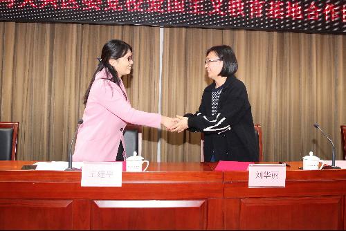 随后,经管学院党委副书记刘华丽老师围绕爱国主义教育基地合作议题进行分享,赢得了与会人员的共鸣,观众席中响起阵阵掌声。在全体到场人员的注视下,刘华丽老师与王建平副校长代表双方隆重地签订了《大兴区爱国主义教育基地合作共建协议书》。