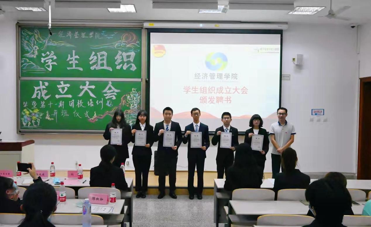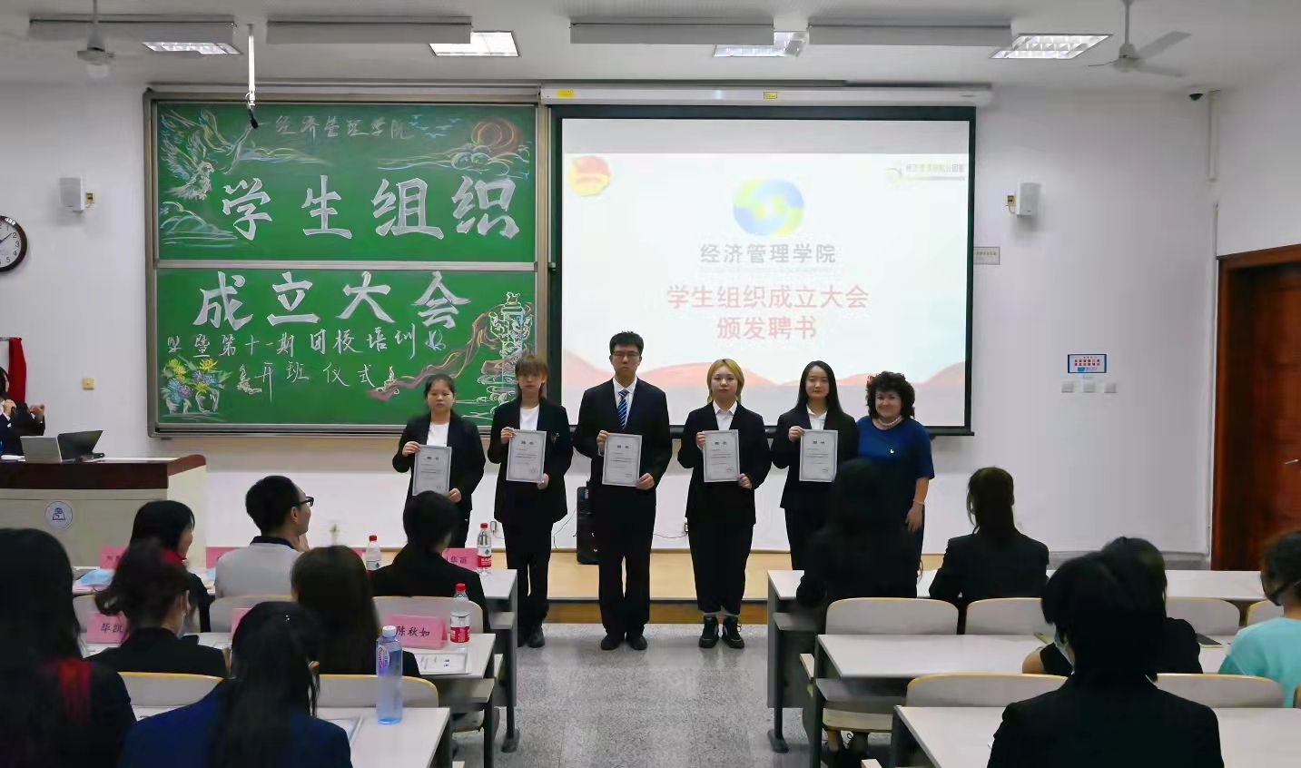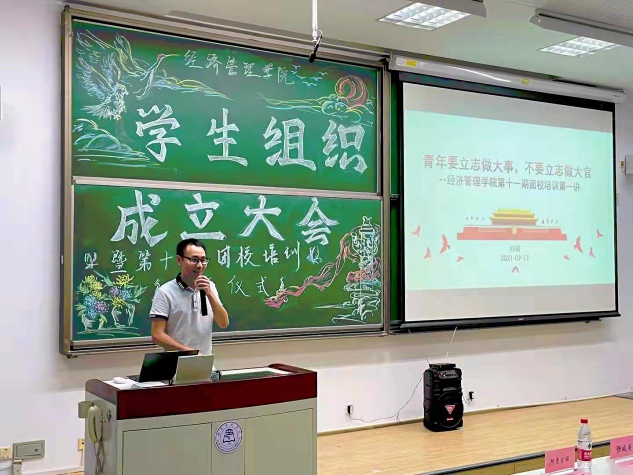 2021年9月17日晚7点,学生组织成立大会暨第十一期团校培训开班仪式于教学楼503召开。经济管理学院党委书记刘华丽,党委副书记刘硕,2021级年级主任、分团委书记张成美,2020级年级主任阿曼古丽,以及本届学生组织全体成员共同参加此次大会。