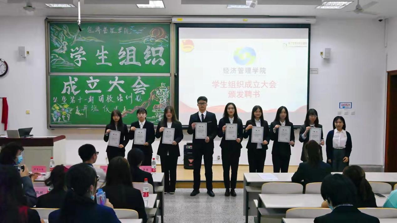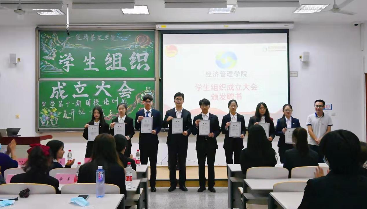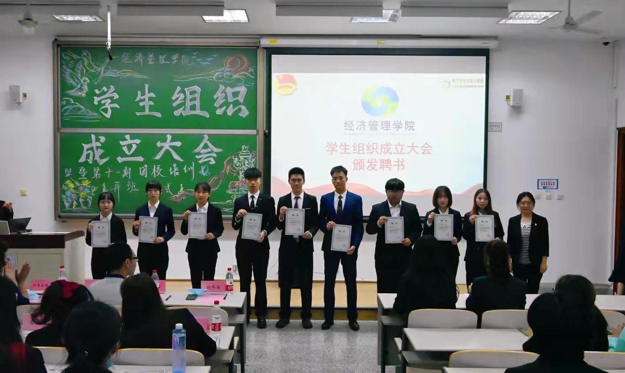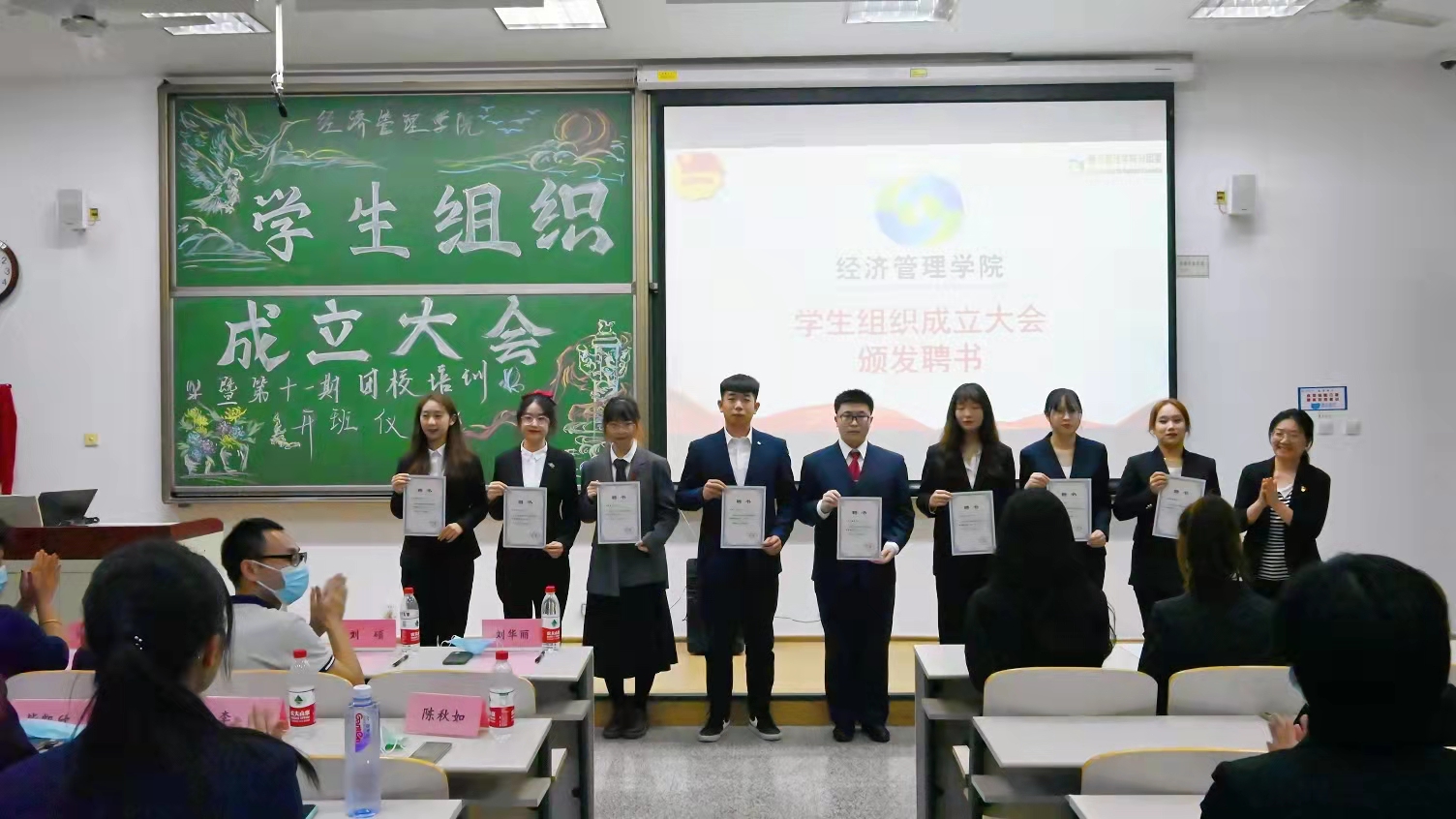 2021年9月17日晚7点,学生组织成立大会暨第十一期团校培训开班仪式于教学楼503召开。经济管理学院党委书记刘华丽,党委副书记刘硕,2021级年级主任、分团委书记张成美,2020级年级主任阿曼古丽,以及本届学生组织全体成员共同参加此次大会。