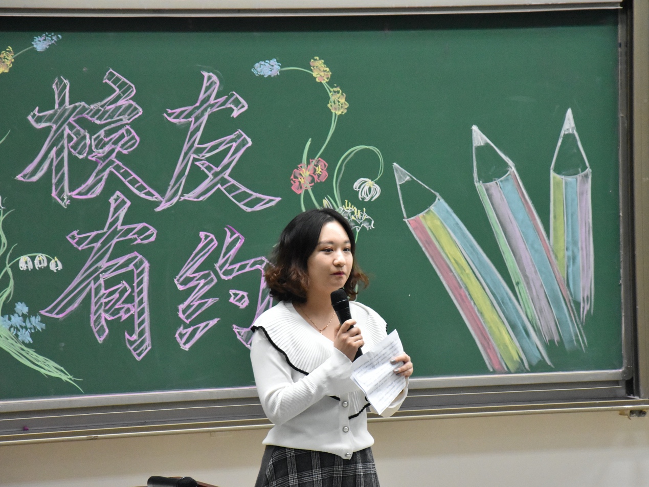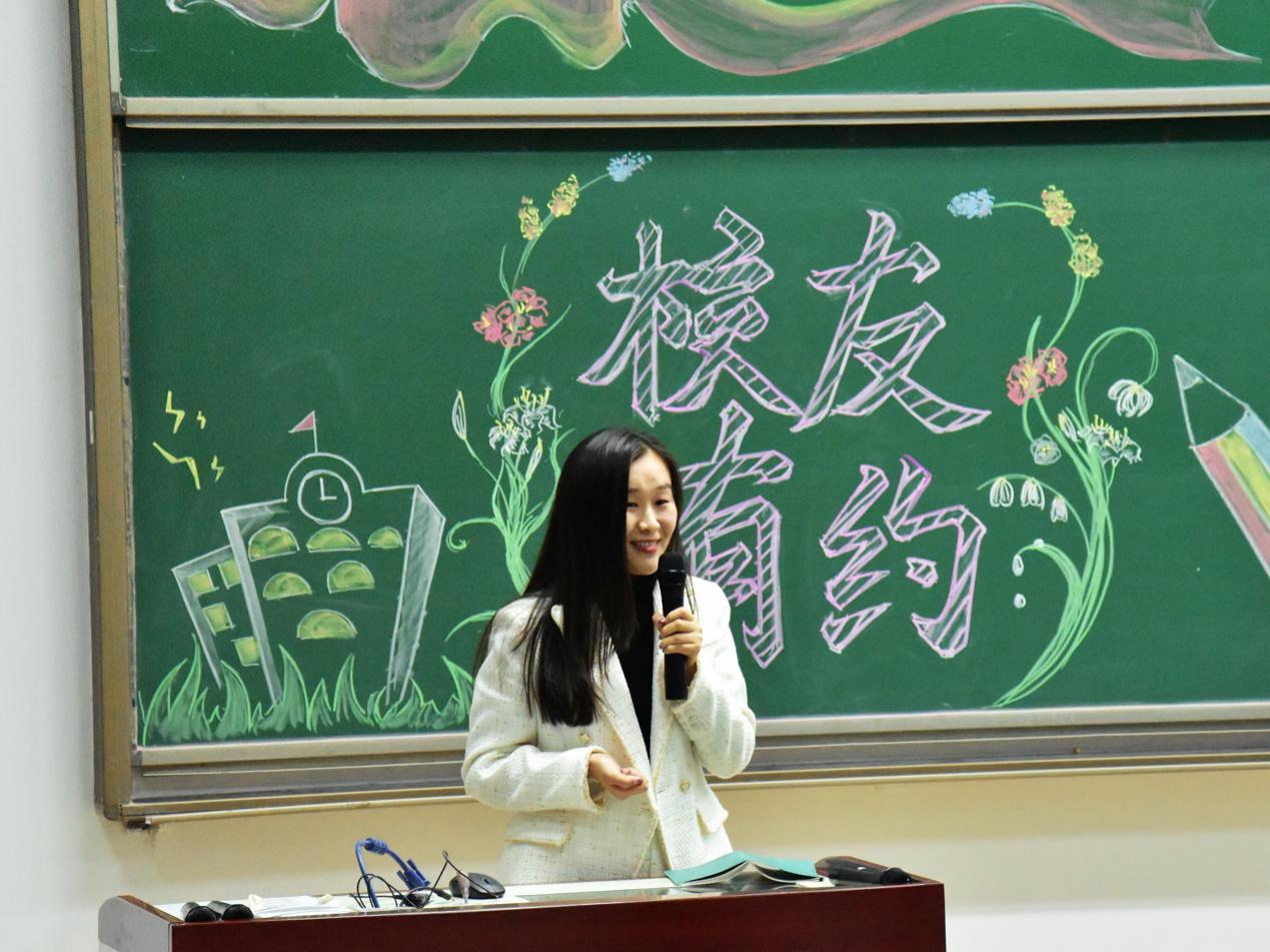 2018届市场营销专业校友熊章晗向同学们分享自己曾担任北京印刷学院经济管理学院分团委副书记的工作经验,并讲述了自己出国留学的故事。在变化中抓住机遇,勇敢迎接未知的挑战。“不惧未知”是熊章晗对自己的总结,也是她想传达给同学们的精神。