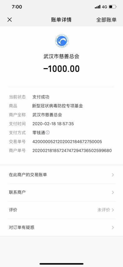 除此之外,侯梦楠同志还向武汉市慈善总会捐款1000元,为武汉助力。