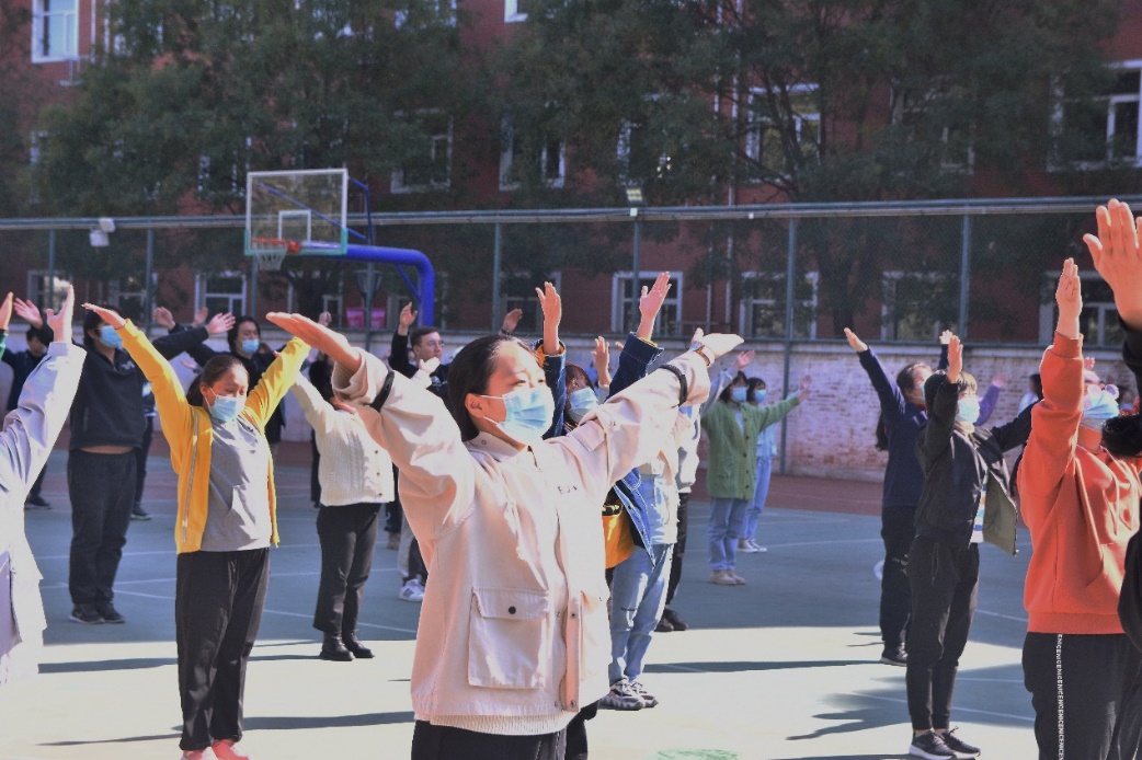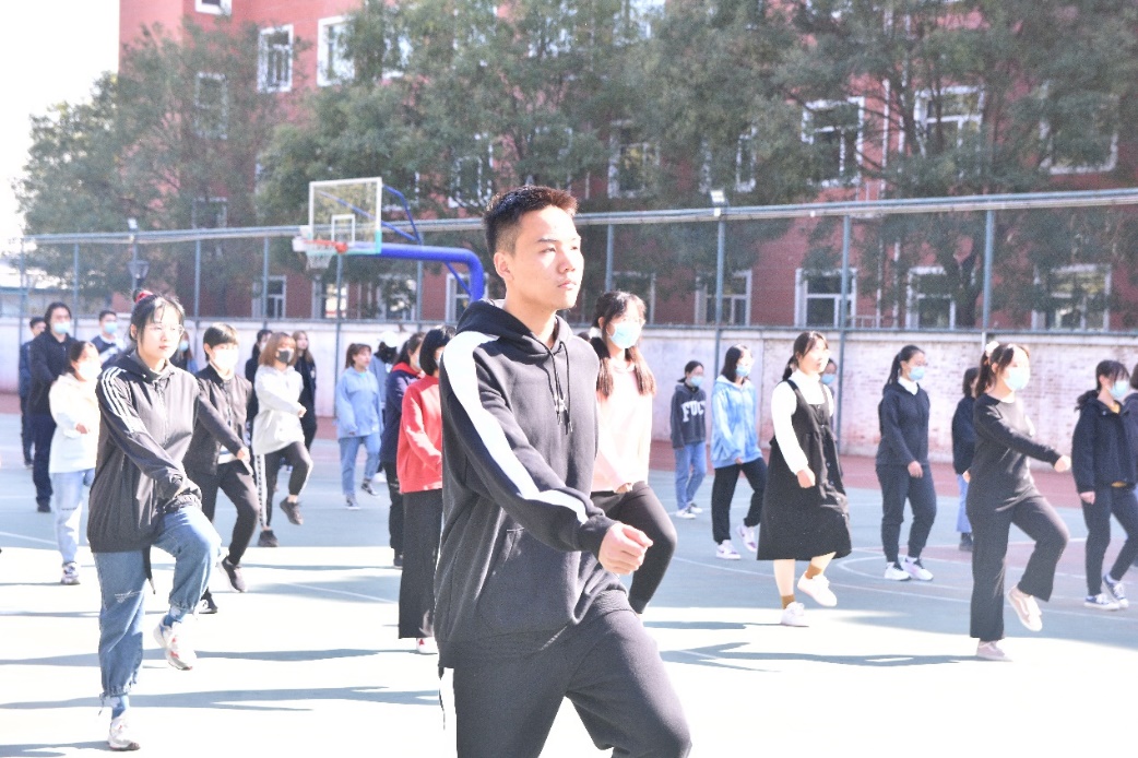 比赛开始后,所有人整齐、有序地入场。20级同学们以三个班为一组进行评比,由各班体委担任本班队伍的领操员。参赛的班级动作规范整齐,赛前做了充分的准备。同学们热情高涨,活力四射,赢得了大众评审的一致好评。