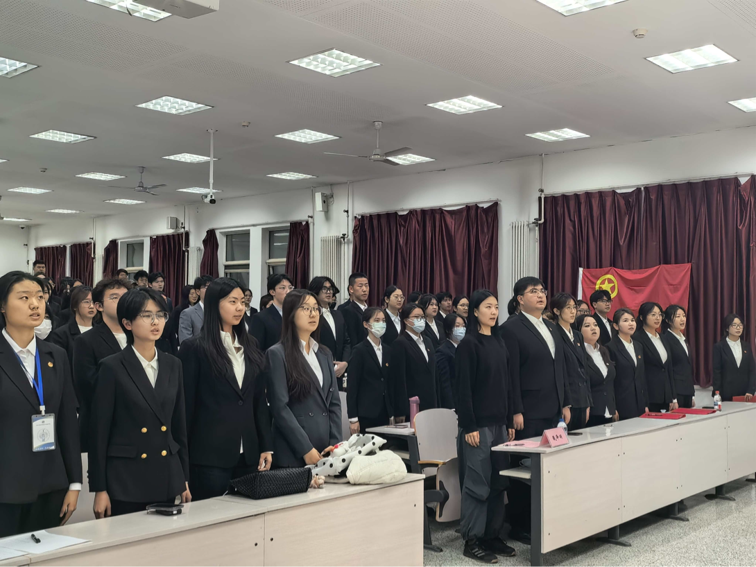 大会在庄严的国歌声中正式拉开帷幕。在宣读本期新发展团员名单后,分团委书记戢泽羽为新发展团员们颁发团员证,并佩戴团徽。