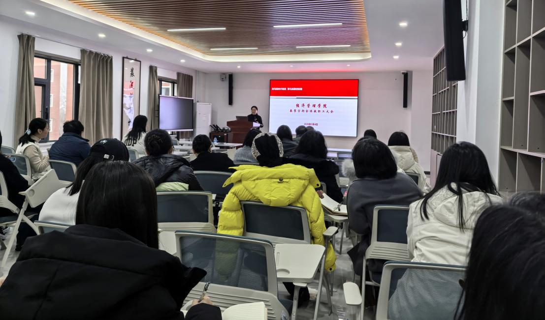 3月4日,经济管理学院召开“龙马精神开新局 策马扬鞭谱新篇”春季学期全体教职工大会,传达学校2026年度工作部署会精神并部署学院新学期工作。学院领导班子及全体教职工参加会议。会议由学院党委书记刘华丽主持。
