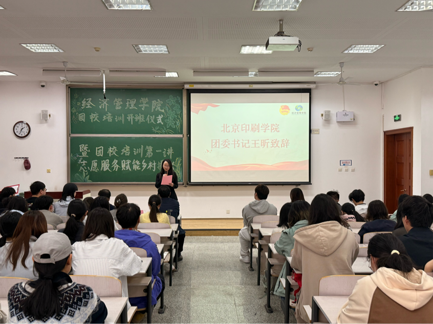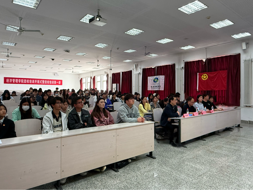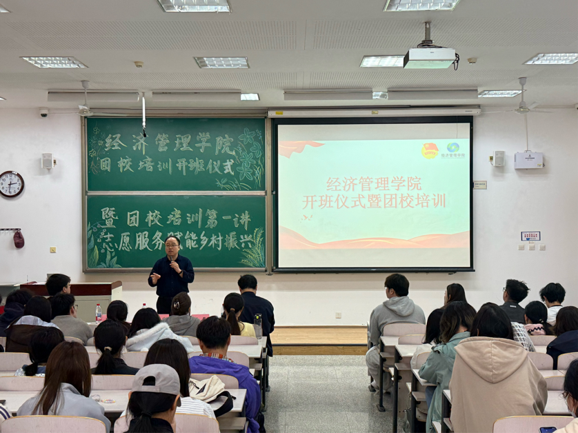 培训在嘹亮的团歌声中拉开序幕。校团委书记王昕在致辞中指出,本次团校培训是学院深化共青团思想政治引领、强化青年实践育人的重要举措,更是我校青年学子响应国家乡村振兴战略、践行青年使命担当的生动体现。她充分肯定了经济管理学院青年学子立足专业优势、精准对接基层需求,以青春智慧服务乡村发展的举措和成效。