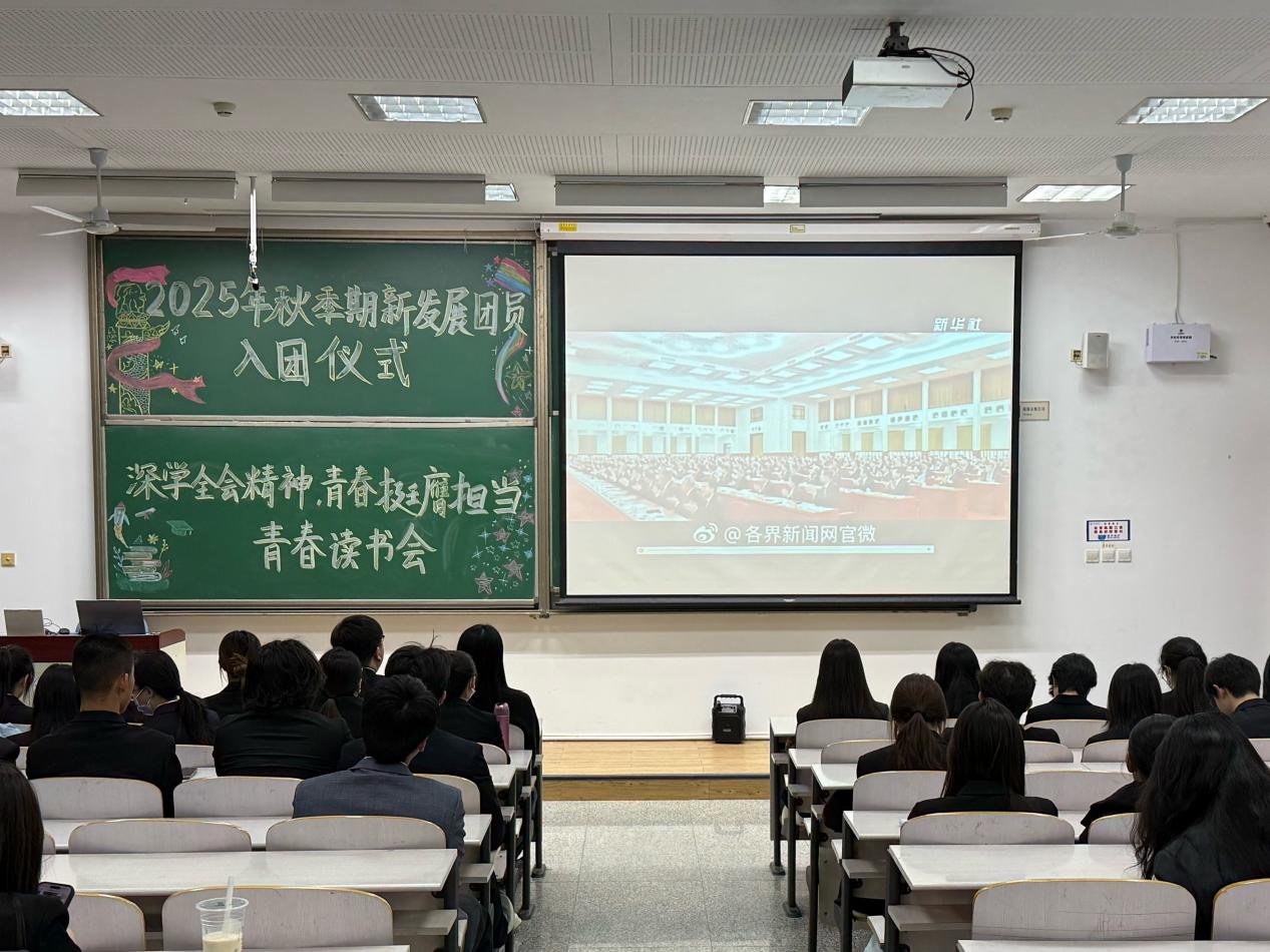 为深入学习贯彻党的二十届四中全会精神,激发广大青年的责任感与使命感,11月26日,经济管理学院举办“深学全会精神,青春挺膺担当”青春读书会。学院分团委书记戢泽羽、团学组织全体成员、2025年秋季期新发展团员、25级本科生各班班团干部参加此次读书会。