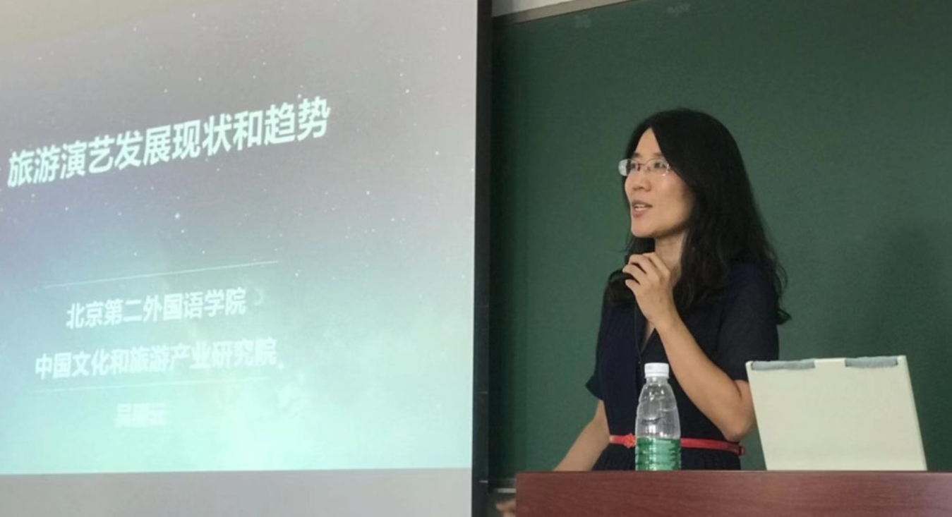 本次讲座主要围绕旅游演艺发展现状及趋势这一主题,内容包括了旅游演艺源起及历程、旅游演艺发展现状、旅游演艺发展模式、旅游演艺未来发展趋势等四大方面。形式上以丰富的图文、视频、数据分析等方式,吴丽云教授结合宋城演艺、印象系列、山水系列的成功案例以及吴教授个人经历,为同学们展示了我国旅游演艺发展现状及趋势,引领同学们思考旅游演艺产业未来发展新趋势。
